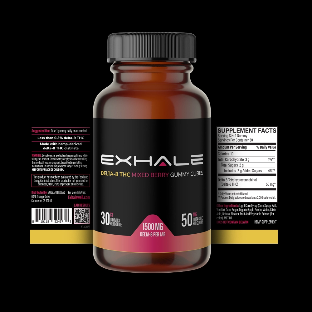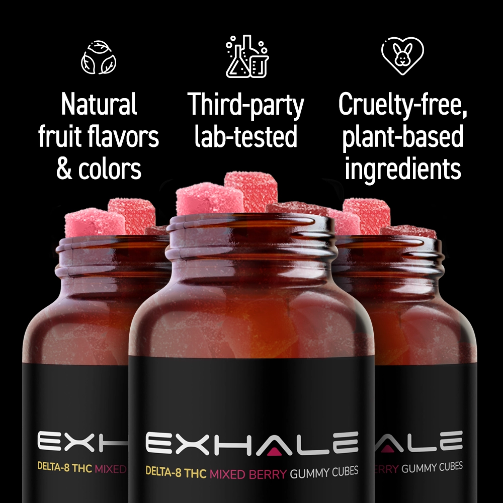 OMG!!! I have bought a lot of gummies from Exhale. The berry are by far the very best tasting ones. I will only be buying this flavor. Other then the immediate flavor, that brings a happy face, there is also no bitter after taste!! I my book, you csn't get any better then that.