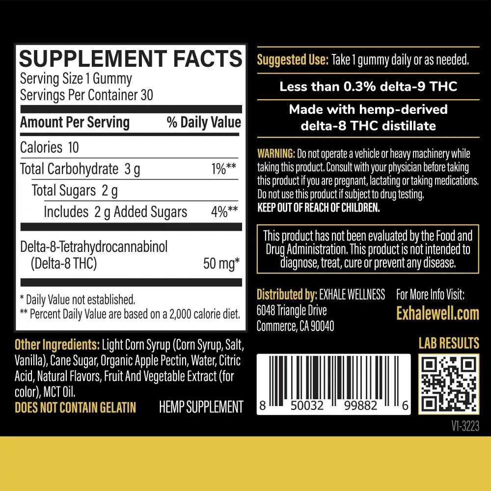 - Plant-based fruit-flavored D8 gummy cubes